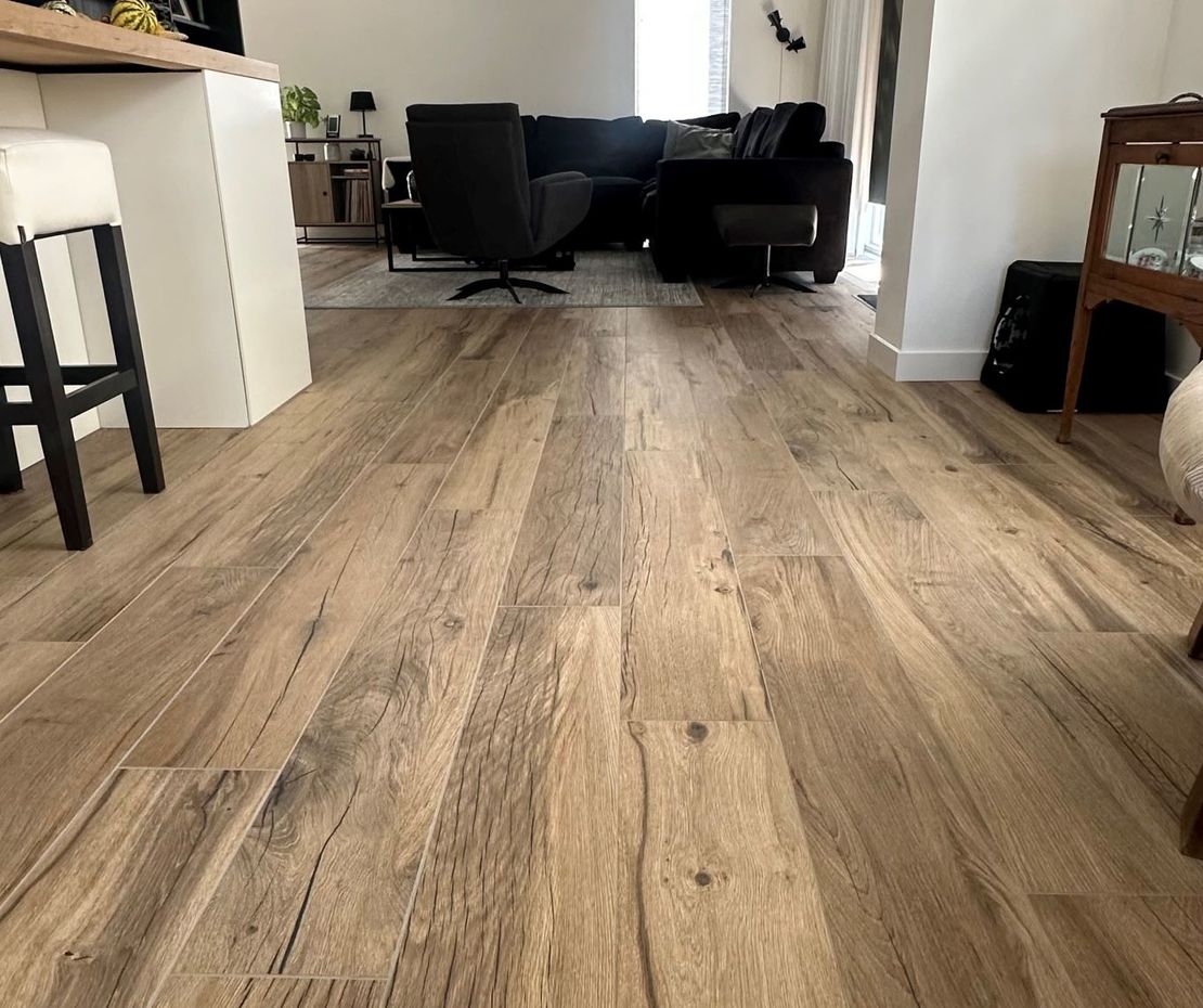 Recentelijk is deze houtlook tegelvloer geleverd in Joure. Deze tegels combineren de uitstraling van hout zonder het onderhoud van echt hout, waardoor ze ideaal zijn voor elk interieur. De houtlook tegels zijn beschikbaar in diverse kleuren en afwerkingen, waardoor ze perfect passen in zowel moderne als klassieke ruimtes.