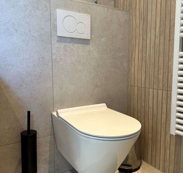 Een landelijke badkamer geleverd in Heerenveen combineert de rustieke charme van natuursteenlook met de warme uitstraling van houtlook. Deze harmonieuze mix van materialen creëert een sfeervolle en authentieke ambiance, ideaal voor een ontspannende en stijlvolle badkamerervaring.