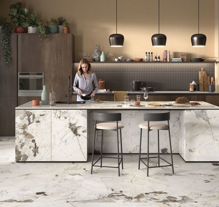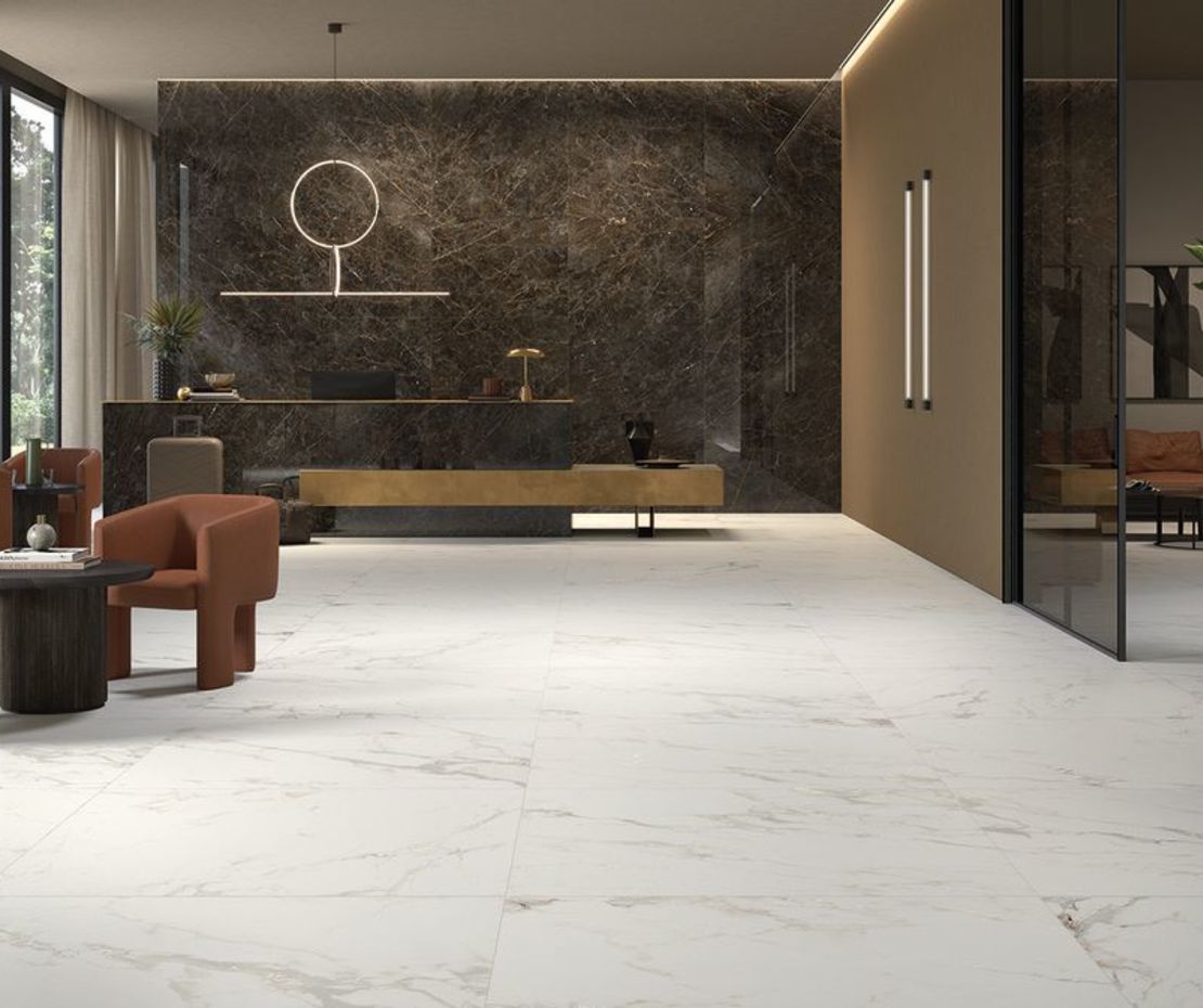 Marmer is een duurdere natuursteen met een luxe uitstraling. Wil je profiteren van de voordelen van keramische vloeren en tegelijkertijd genieten van die mooie sfeer van marmer? Kies dan voor marmerlook tegels. Het beste van beide werelden en deze tegelvloer is ook nog eens bestand tegen verkleuring.