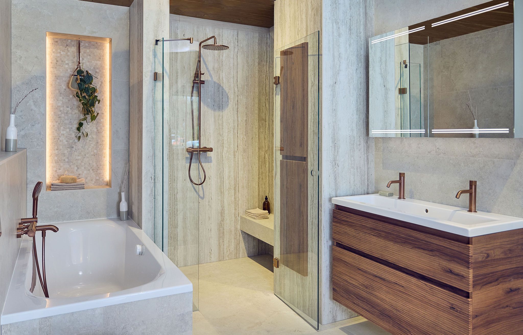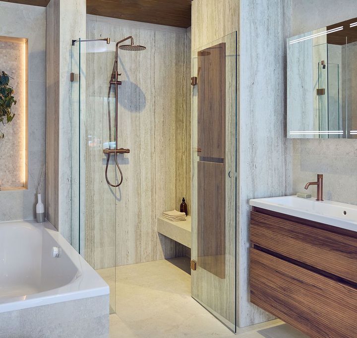 Typische kenmerken van een Japandi badkamer zijn strakke lijnen, minimalistisch design en het gebruik van natuurlijke materialen. Je ziet vaak houten elementen, zoals een mooi houten badkamermeubel of een houten badplank. Steen en keramiek zijn ook populair, bijvoorbeeld in de vorm van een stenen wastafel of tegelwerk. Planten zijn een must in de Japandi stijl. Ze brengen een vleugje natuur naar binnen en zorgen voor een frisse uitstraling.