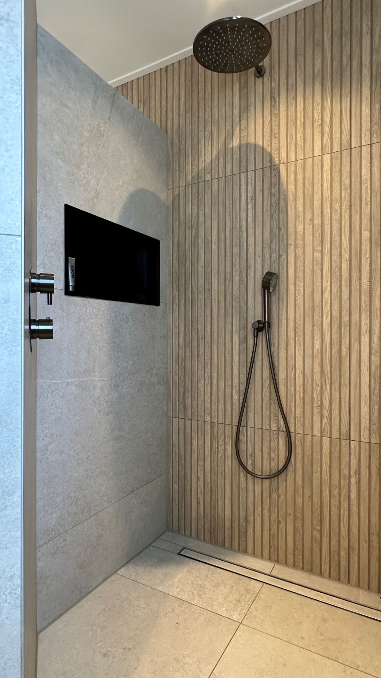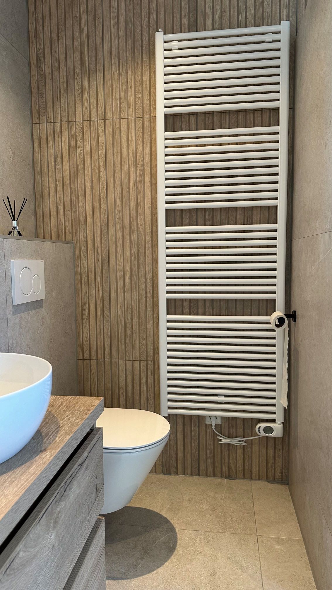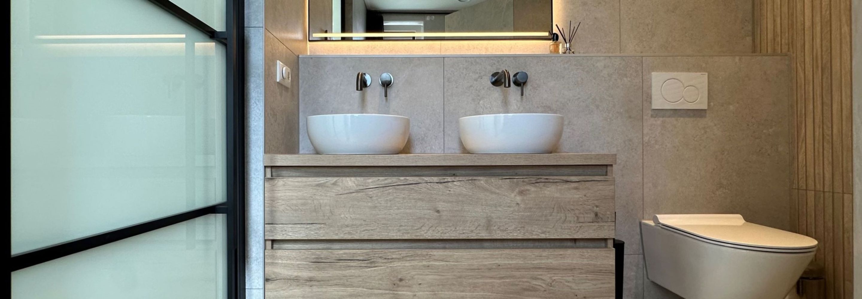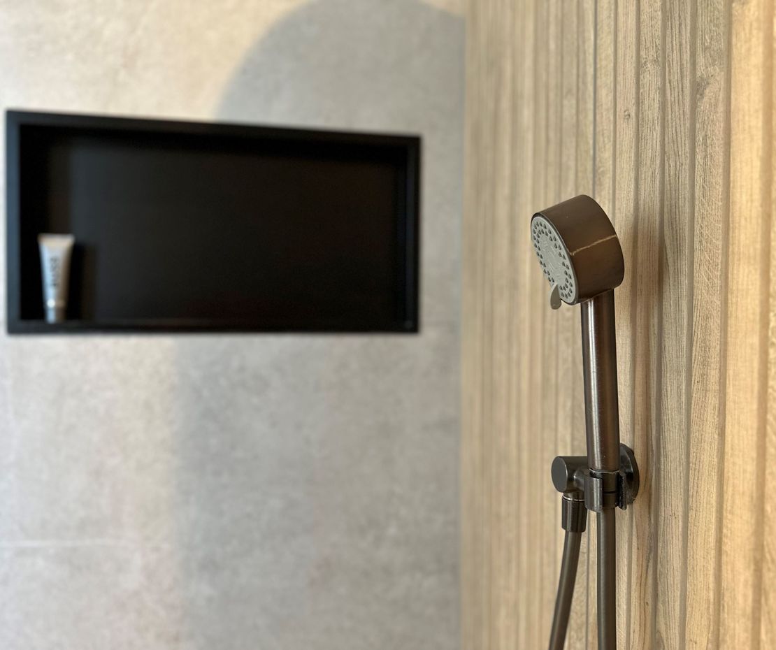 Een landelijke badkamer geleverd in Heerenveen combineert de rustieke charme van natuursteenlook met de warme uitstraling van houtlook. Deze harmonieuze mix van materialen creëert een sfeervolle en authentieke ambiance, ideaal voor een ontspannende en stijlvolle badkamerervaring.