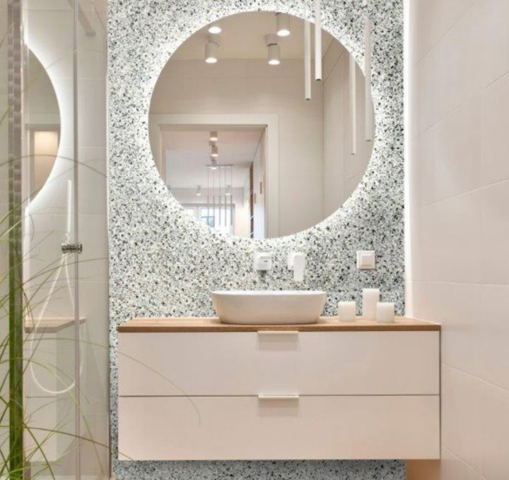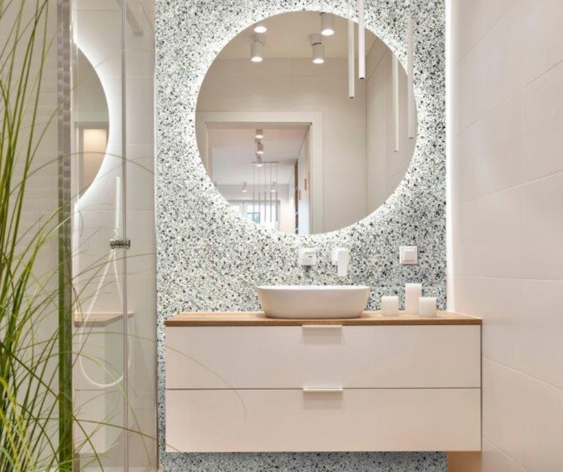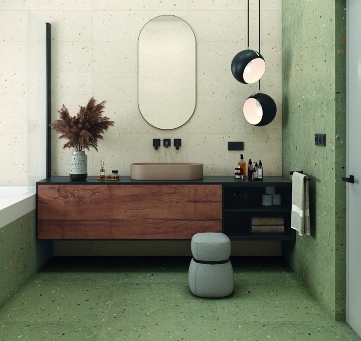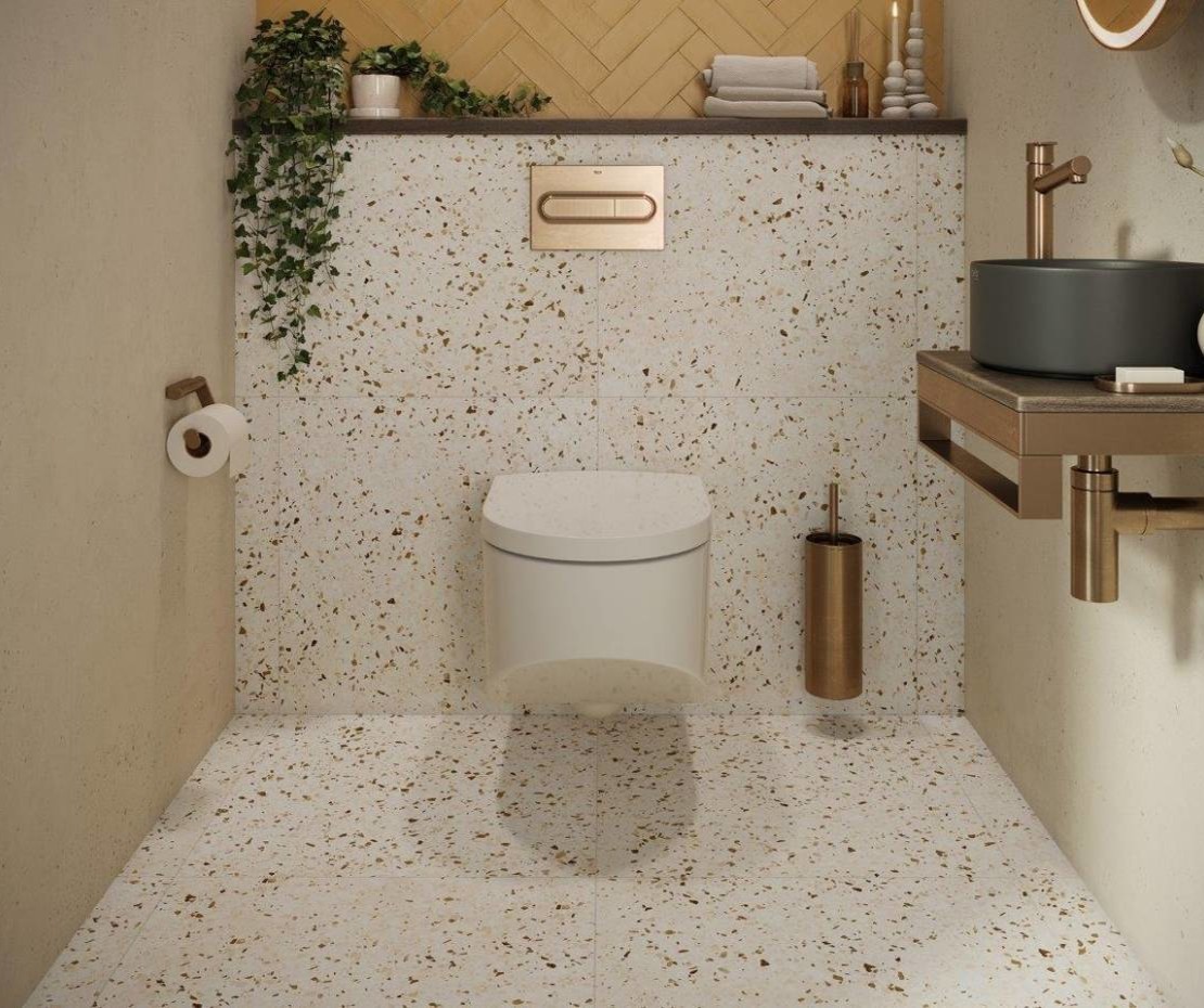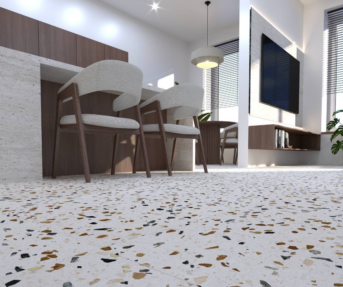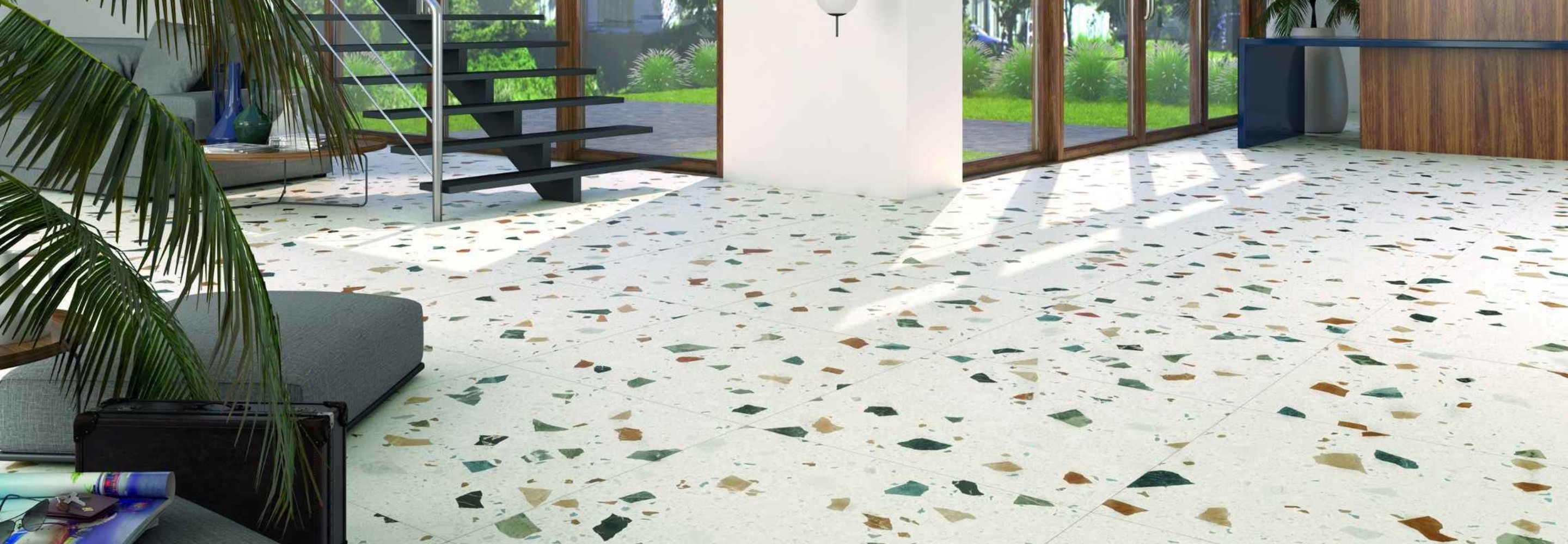 Met terrazzo look tegels breng je een speelse en stijlvolle uitstraling in huis. De karakteristieke mix van marmer-, graniet- en kwartsdeeltjes zorgt voor een levendig patroon dat nooit verveelt. Bij Stienstra Joure vind je terrazzo look tegels in verschillende kleuren en formaten. Ontdek het aanbod in onze showroom en laat je inspireren.