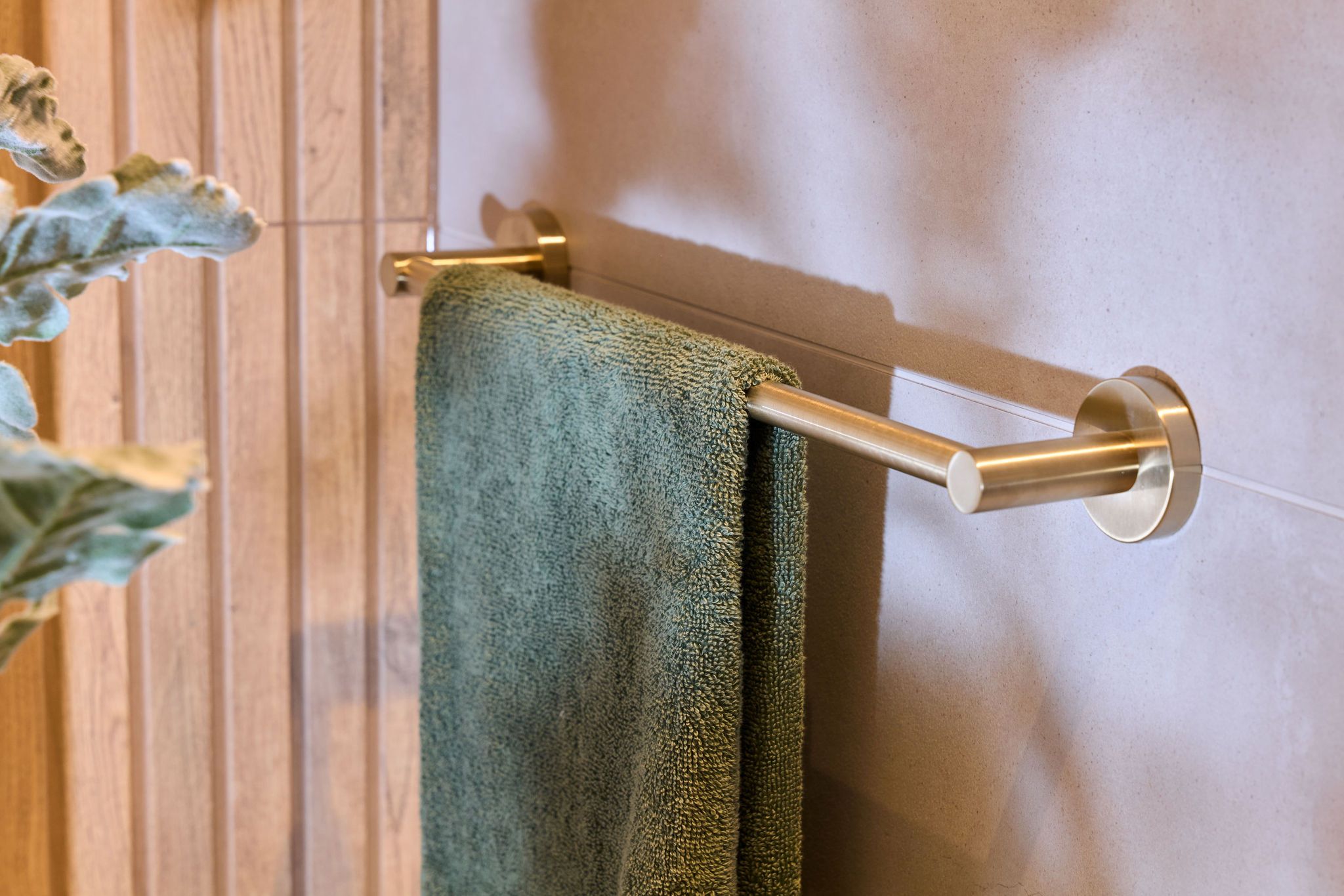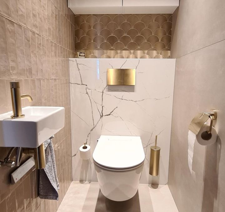 Veel gebruikte materialen in een Japandi toilet zijn licht hout, zoals eiken of bamboe, natuursteen, en soms een vleugje zwart staal voor de moderne touch. De muren zijn vaak in zachte, neutrale tinten geschilderd, zoals wit, beige of lichtgrijs. Accessoires zijn simpel en functioneel, zoals een mooie houten toiletrolhouder of een strak vormgegeven zeepdispenser.