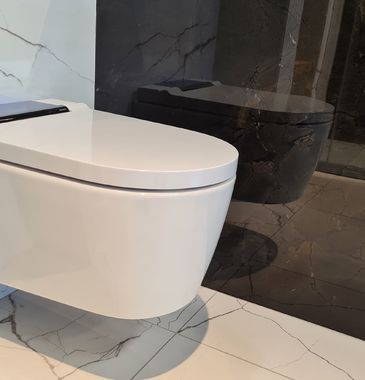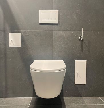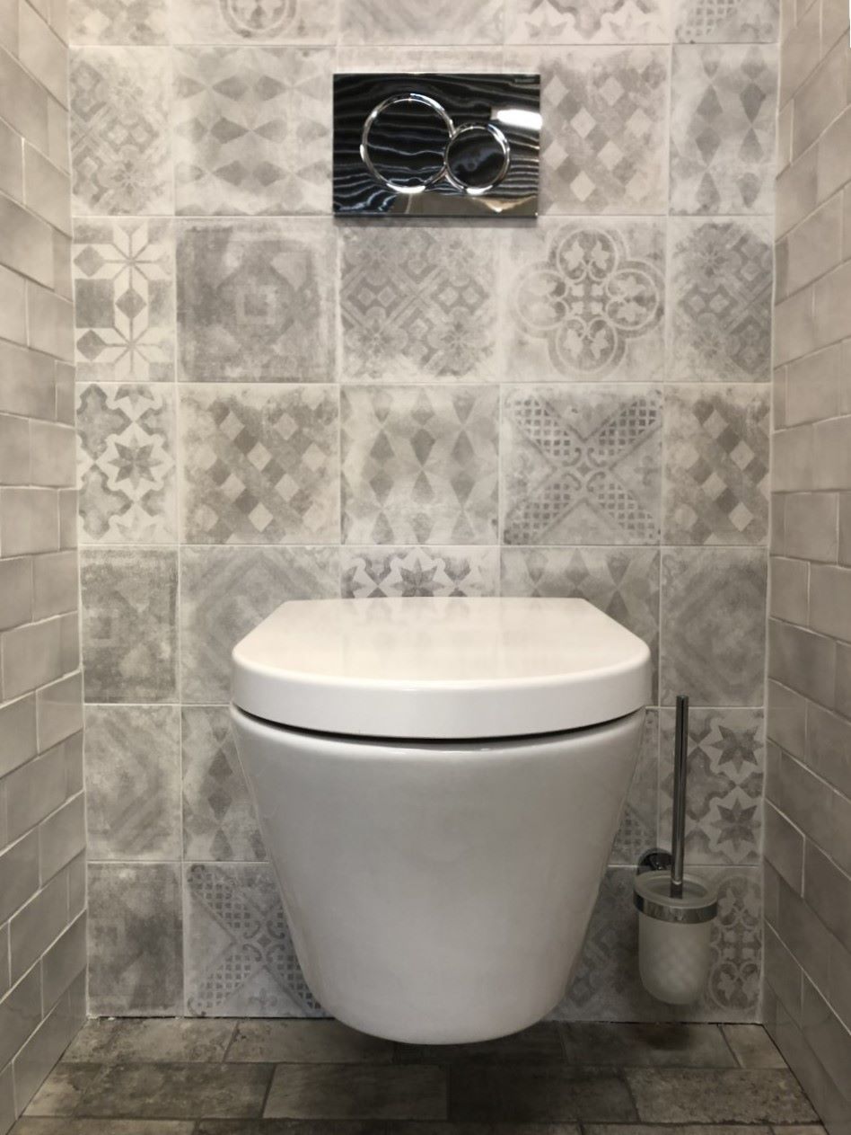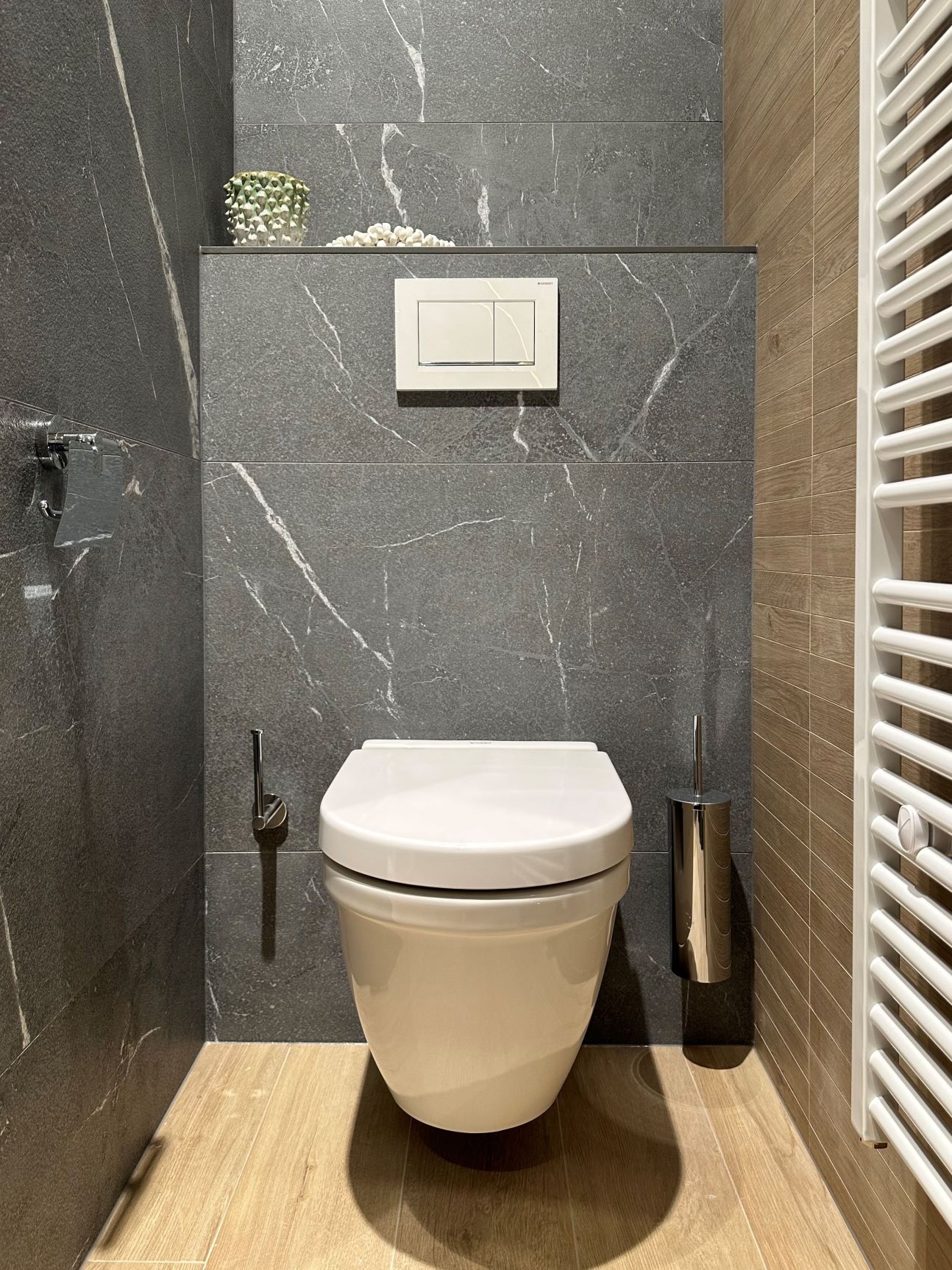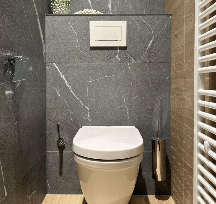 Het kleine toilet heeft een knusse, maar functionele sfeer. Het is compact en eenvoudig, met een klein fonteintje. Ondanks de beperkte ruimte is het goed verzorgd en schoon.